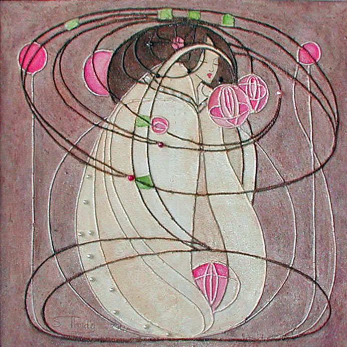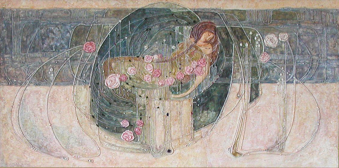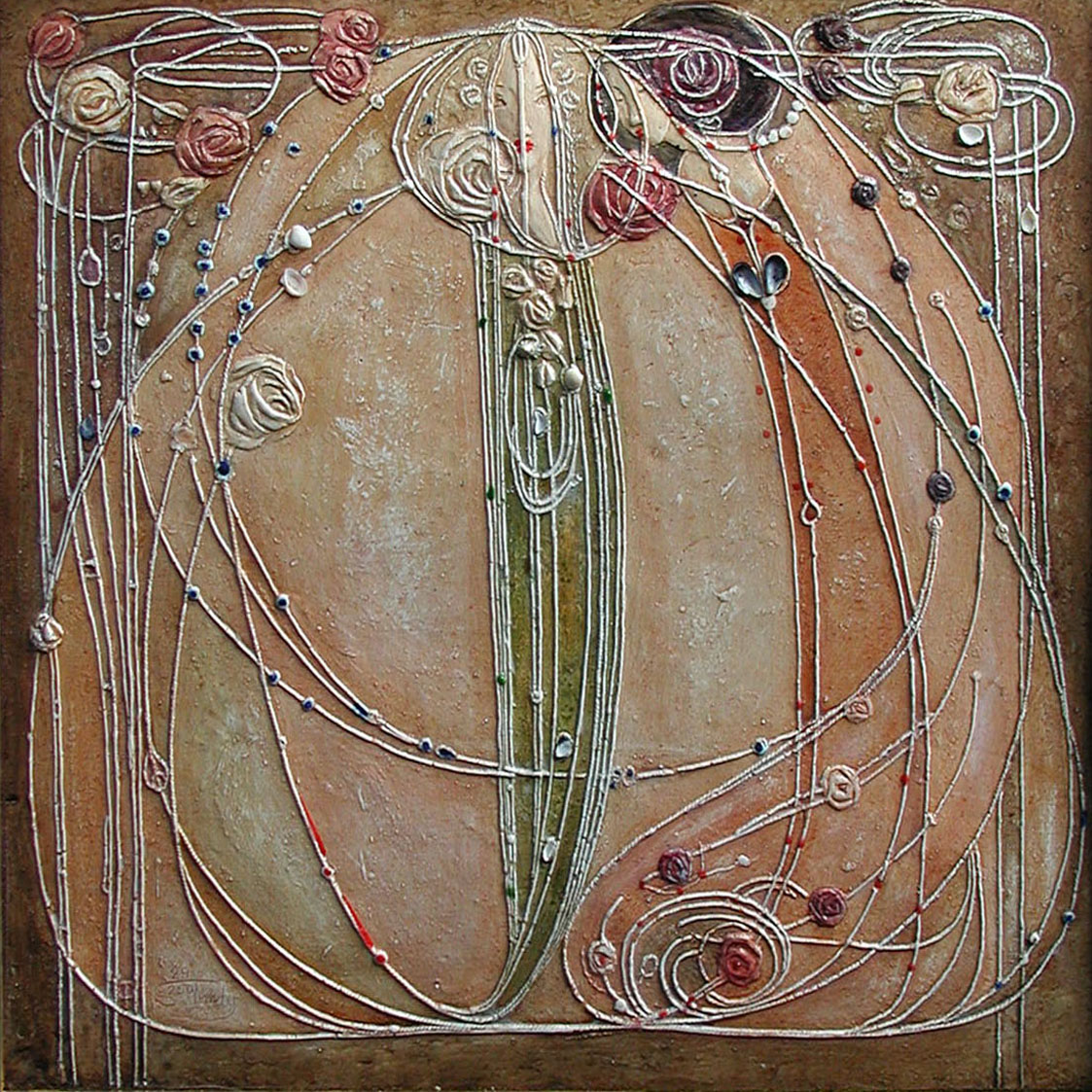 Dreaming Rose | Plaster of Paris, acrylic, beads | 38cm x79cm