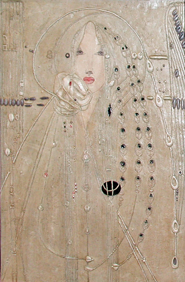 Miranda | Plaster of Paris, acrylic, semi-precious stones, 58cm x 39cm